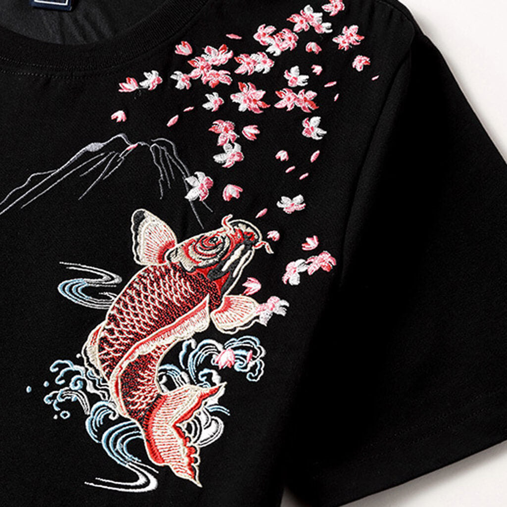 Design: Large koi embroidered details.